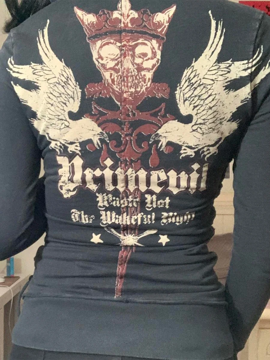 Women’s Spring Autumn Casual Bandage Hoodie Long Sleeve Pattern Print Zipper Outerwear