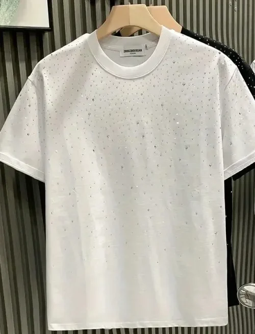 New Luxury Men’s T-shirt Hot Diamond Printed Half Sleeve Fashion Round Neck Casual Summer High-end Men Tops T Shirts
